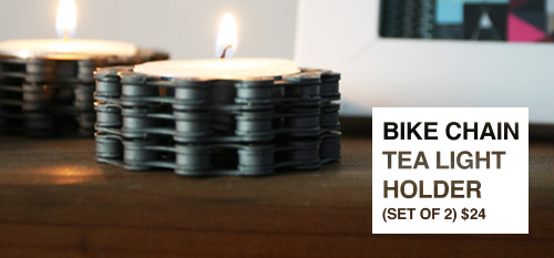 Set the mood, and do it sustainably, with these recycled bike chain tealight holders.
