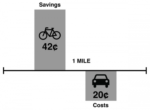 Cycling in fact even makes your city money. Copenhagen, the worlds preeminent cycling city, estimates that every mile traveled by bicycle saves the city 42 cents in health care and transportation costs among other things, while every mile traveled by car costs the city 20 cents.