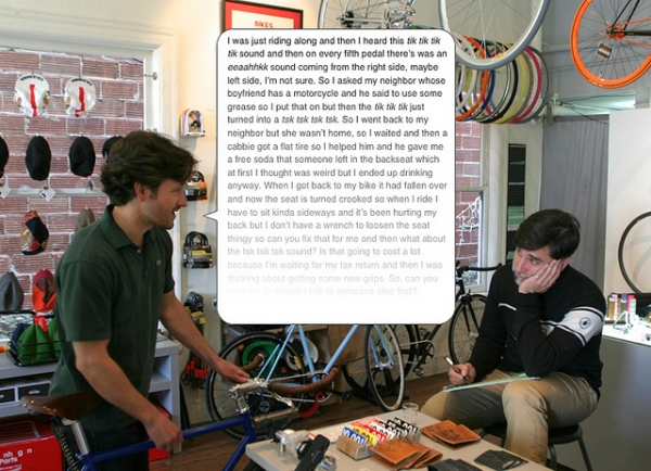 Before you spend 3 long minutes making a dozen weird grinding and squeaking noises to describe your problem, make sure you're telling the right person. The front counter staffer might not need to know what the new click sounds like. Save it for the mechanic.