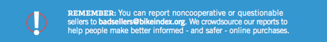 Pro Tip: You can contribute to crowdsourced reports by emailing badsellers@bikeindex.org with shady seller info.