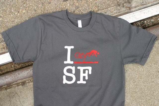 This week only we're throwing in a free I [CRASH] SF sticker. Place your T-shirt order before Monday, 8/26 and we'll include the sticker for free.