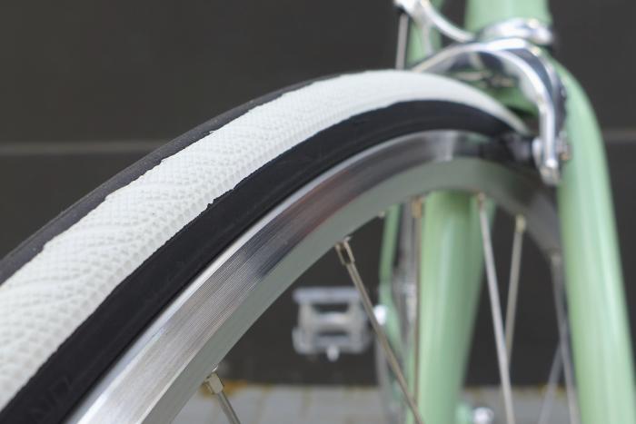 Subtle colors, classic accents and a white bullhorn bar give this Mint build a timeless look. Upgrades include Antique Brown Brooks leather bar tape and saddle, and Vittoria Rubino tires.