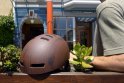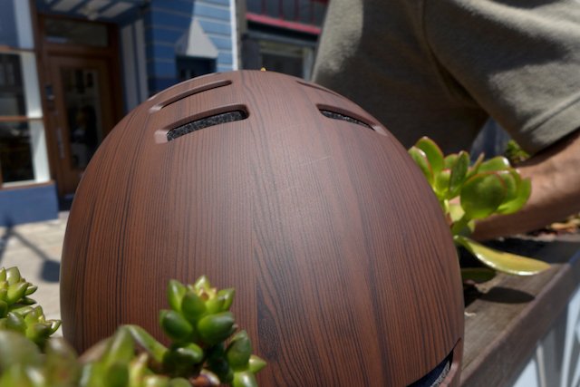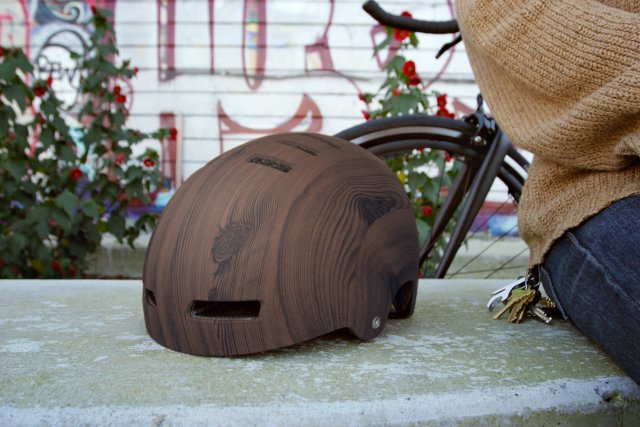Lathe turned from a single block of sustainably managed walnut, this natural wood helmet absorbs CO2 out of the atmosphere as you ride.