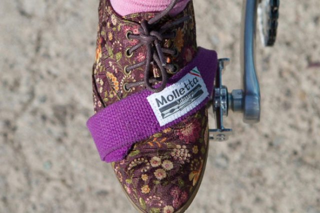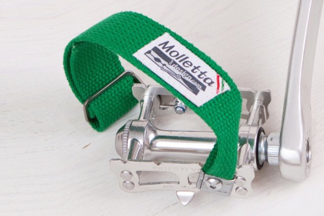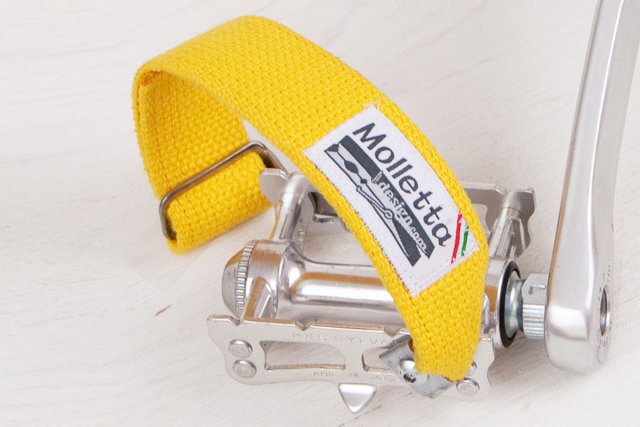These hand made cotton straps are gentle on leather/dress shoes and will keep your loafers snug. Compatible with nearly any pedal that accepts toe clips, they include all mounting hardware, only take moments to install, and are available in 14 colors to match any detail on your bike. No more slipping, no more power lost.
