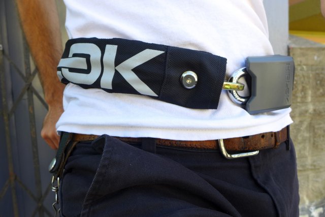Hiplok is the first lock designed specifically to be worn around the waist. Hiplok's integrated and fully adjustable belt allows the rider to tighten the lock around the waist without actually locking the device, offering a level of portability, comfort and versatility never seen before. All Hiplok's are adjustadble and one size fits all.