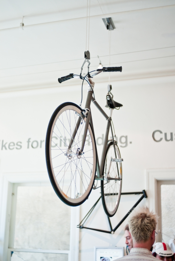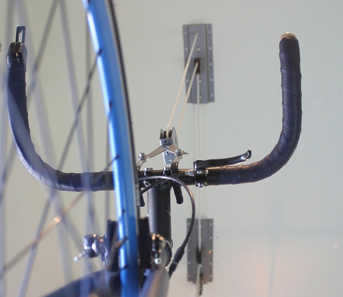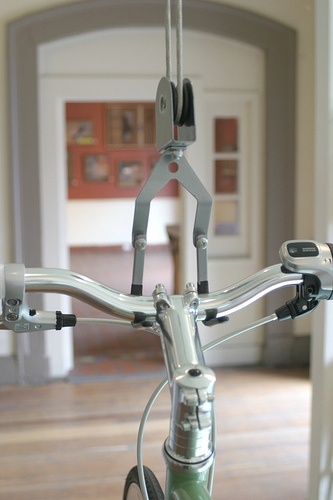 Free up floor and wall space with this ceiling mounted bike hoist.