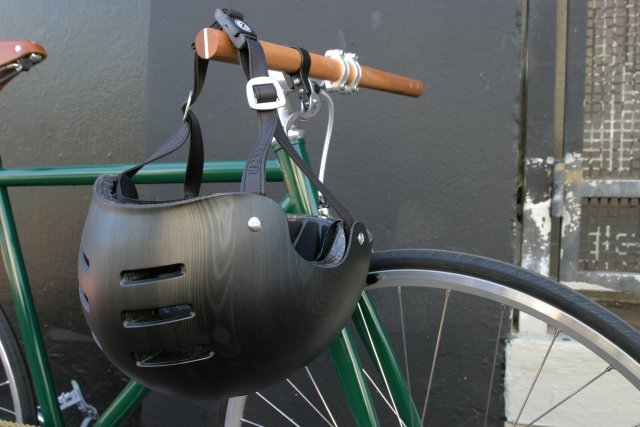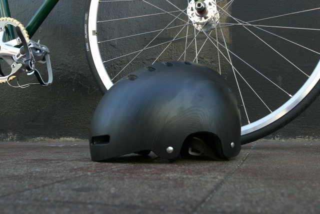 Lathe turned from a single block of sustainably managed black walnut, this natural wood helmet absorbs CO2 out of the atmosphere as you ride.