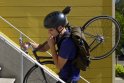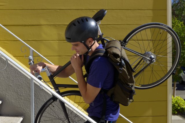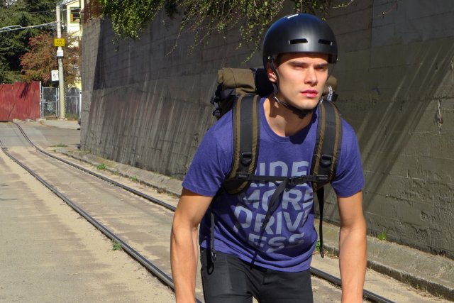 This technopolymer injected helmet (read: fancy plastic) meets all US and EU safety standards. 16 vents keep you cool while full coverage keeps you safe. The leather chin strap is durable and elegant and finishes with a magnetic clasp for easy closure with one hand on the go.