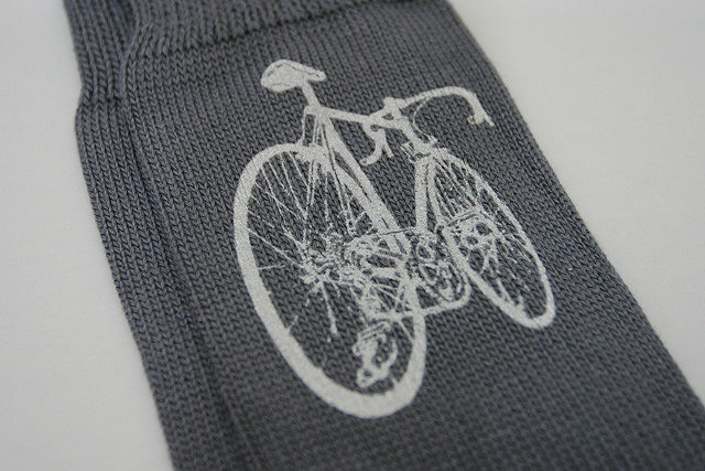 Soft, breathable, sustainable, anti-bacterial socks made from bamboo wood pulp (90% bamboo 10% nylon) and printed with our favorite icon: a bicycle.