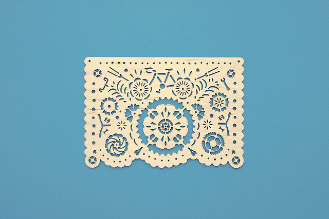 Now we're happy to offer a permanent way to enjoy and display a papel picado panel: laser cut from maple plywood. Each panel is individually cut here in San Francisco and available exclusively at Mission Bicycle.