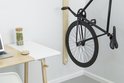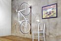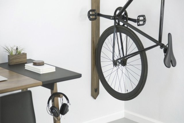 Whether you're tight on space or simply want to showcase your bike, this vertical rack has been elevated to heirloom furniture. It will look just as good without your bike as it will with it.