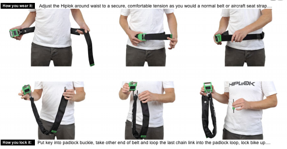 There are nearly as many awkward ways to carry a bike lock as there are cyclists. From blowing out your pocket, to clanking around on the handle bars, cyclists have tried every way to bring a lock without bringing a bag. Thankfully, the good folks at Hiplok have figured it out for the rest of us. Sparing your jeans, your frame and your freedom.
