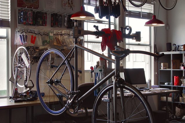 When Mission was founded in 2008 our bikes were built in a borrowed conference room. We graduated to a warehouse on Cesar Chavez Street, and then finally to our home on Valencia Street. When we outgrew that space, but couldn't move the walls, we moved bike building into a workshop across the street. We're excited that next month, we're bringing every wheel, pedal, and mechanic back into 766 Valencia, and a new build workshop on the 2nd floor.